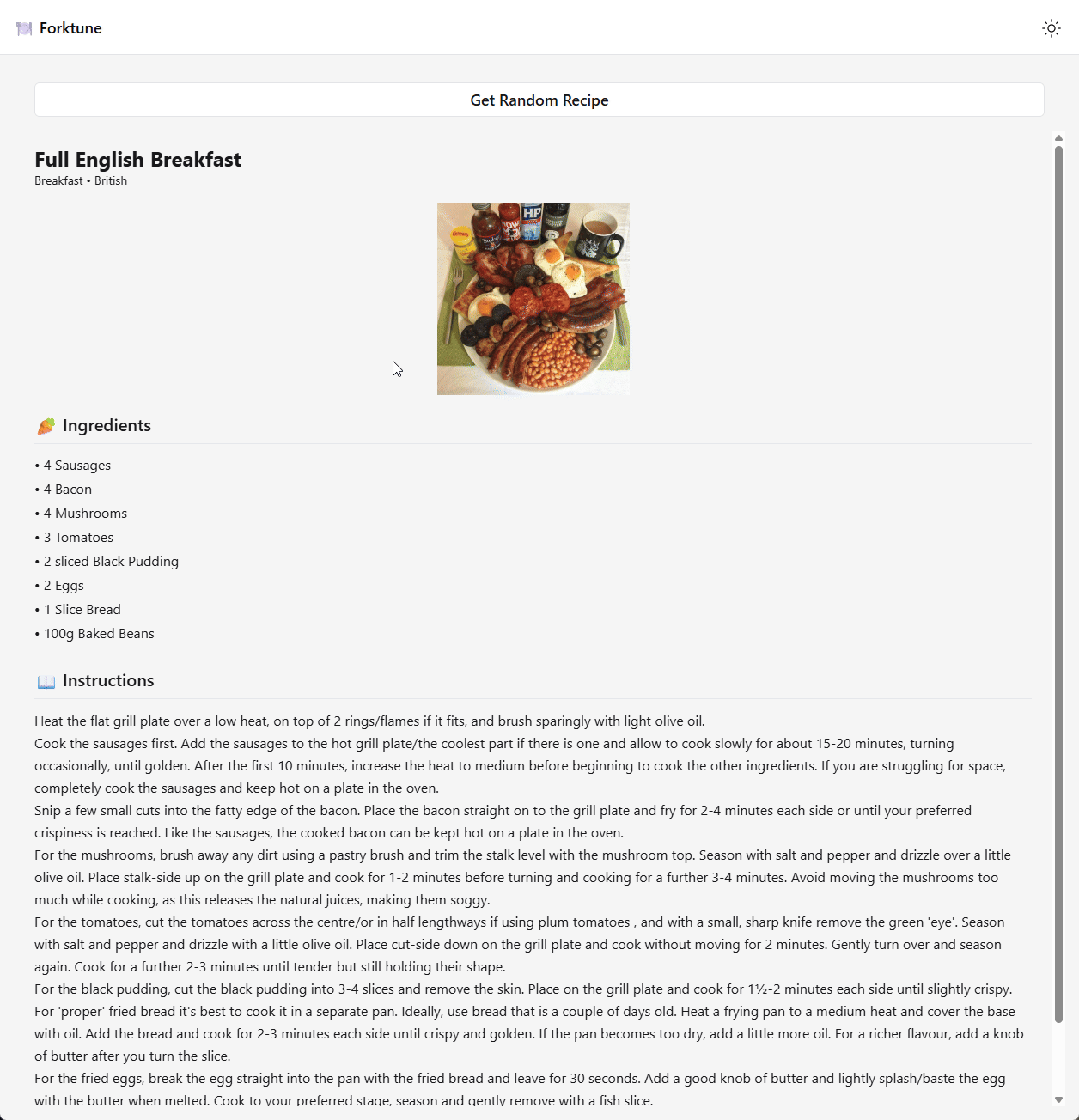 Gets random recipes with ingredients and instructions!