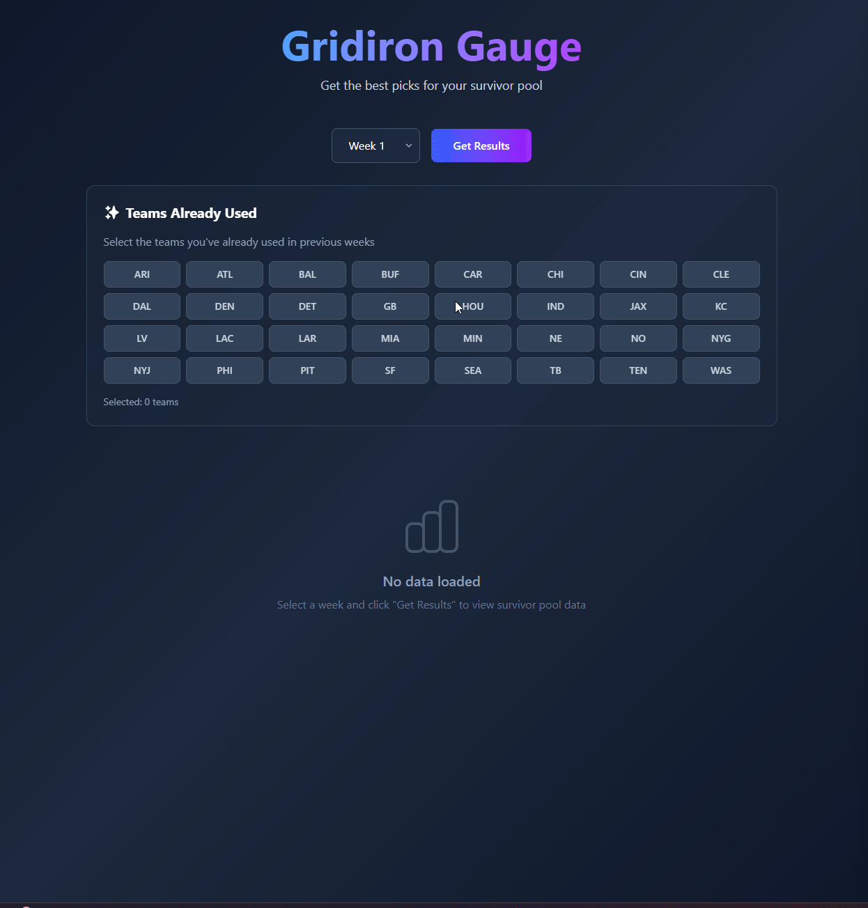 Predicts the best choice for your week in NFL Fantasy Survival. Allows you to indicate which teams you have already selected before getting back results based on the algorithm.